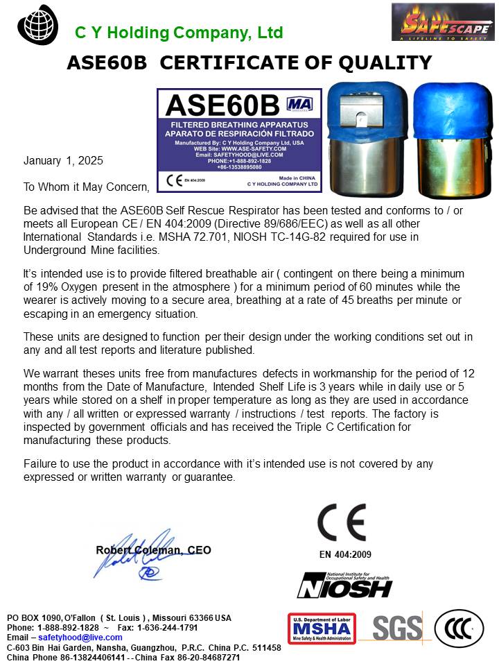 ASE60B FILTERED MINE BREATHING RESPIRATOR